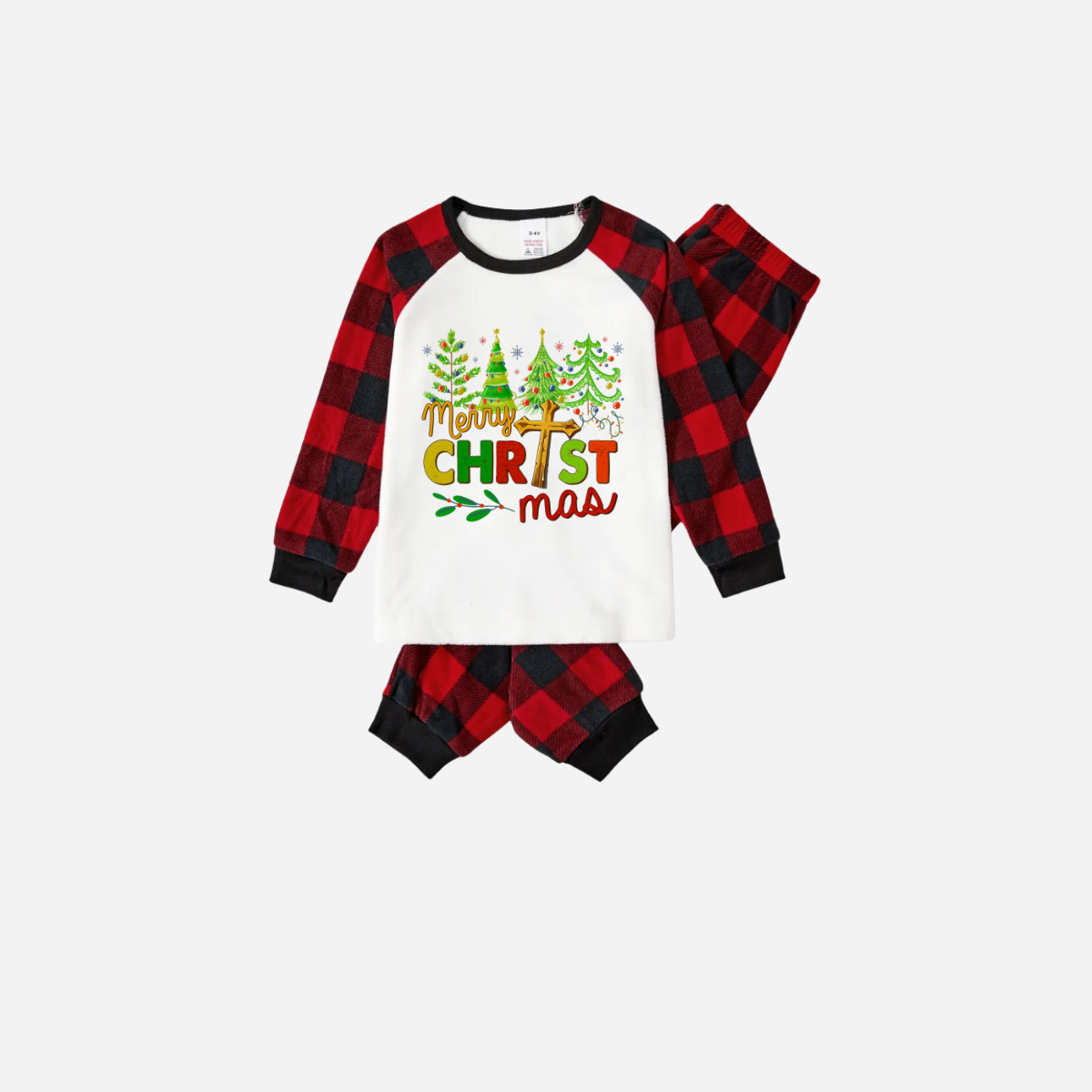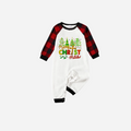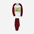 Merry Christmas Trees Family Christmas Pajamas Set - White Top with Red Plaid Sleeves and Red Plaid Pants