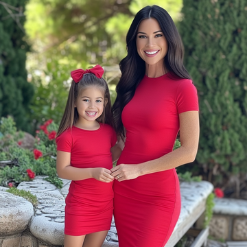 Elevate your mother-daughter style with this set of solid burgundy short sleeve bodycon dresses! This sophisticated matching outfit exudes elegance and charm, perfect for various occasions. The simple yet stylish design accentuates your curves, while the short sleeves provide comfort and ease of movement. Whether you're attending a party or simply going about your day, these dresses will make you both shine. Show off your bond and fashion sense with this stunning ensemble, and stand out with grace and charm wherever you go!