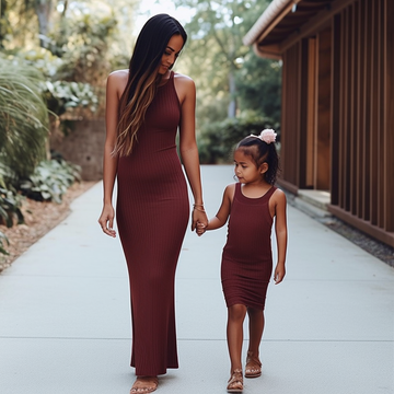 Mommy and Me Burgundy Ribbed Knit Tank Dress