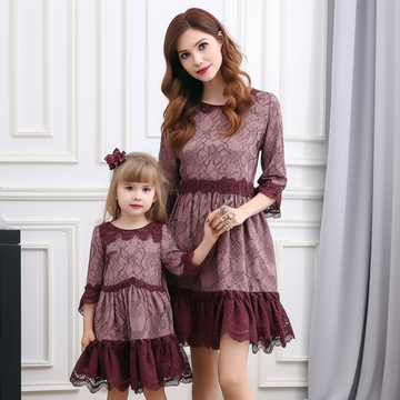 Mommy and Me Contrast Lace Ruffle Hem Dress