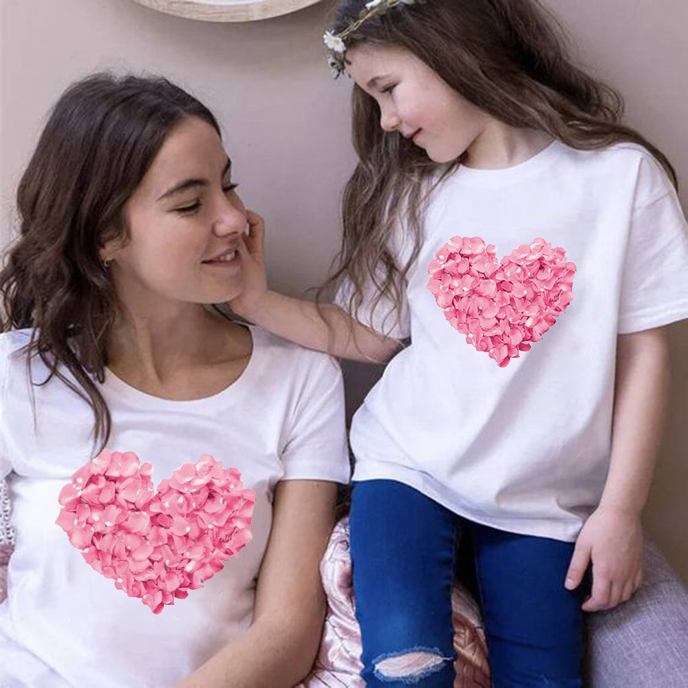 Mommy and Me Love Heart Print Short Sleeve T-Shirt