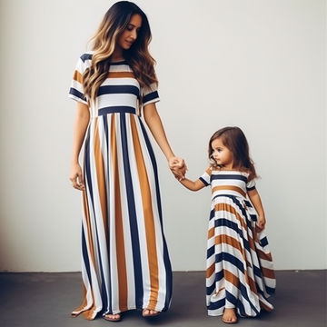 Mommy and Me Short Sleeve Striped Print Long Dress