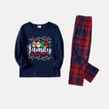 Navy & Red Plaid Christmas Pajamas Set With Christmas Light and "2025 Family Christmas" Text Print