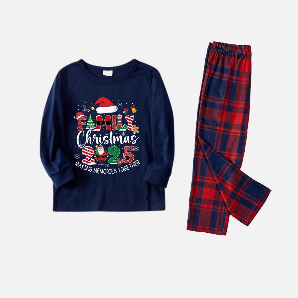 Navy & Red Plaid Christmas Pajamas Set With "Family Christmas 2025 Making Memories Together" Text Print