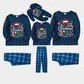 Navy & Sky Blue Plaid Christmas Pajamas Set With "Family Christmas 2025 Making Memories Together" Text Print