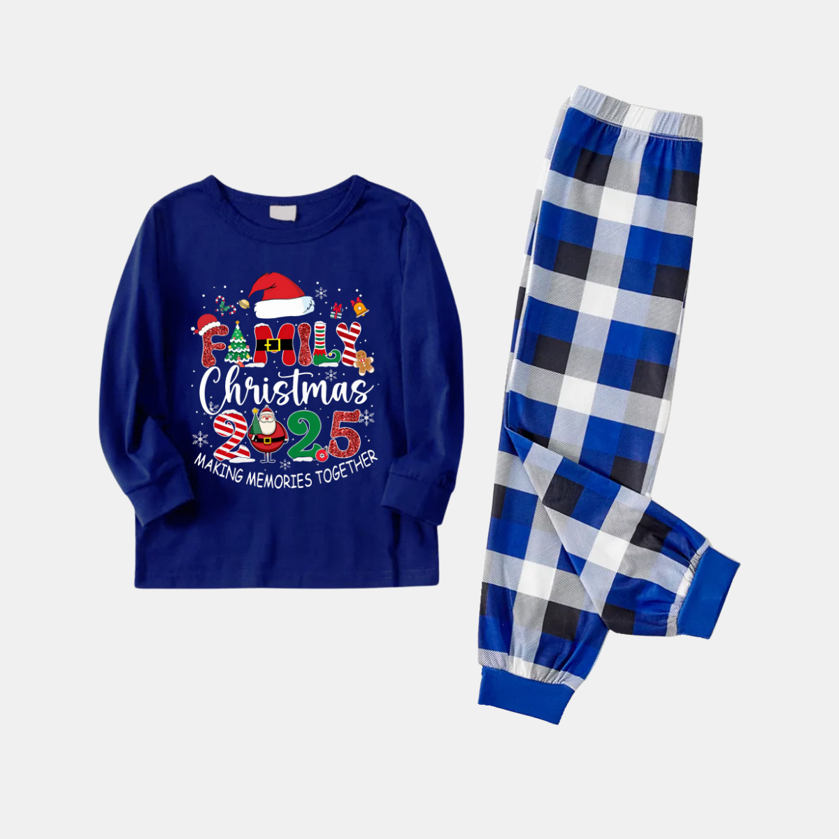 Navy & White Plaid Christmas Pajamas Set With "Family Christmas 2025 Making Memories Together" Text Print