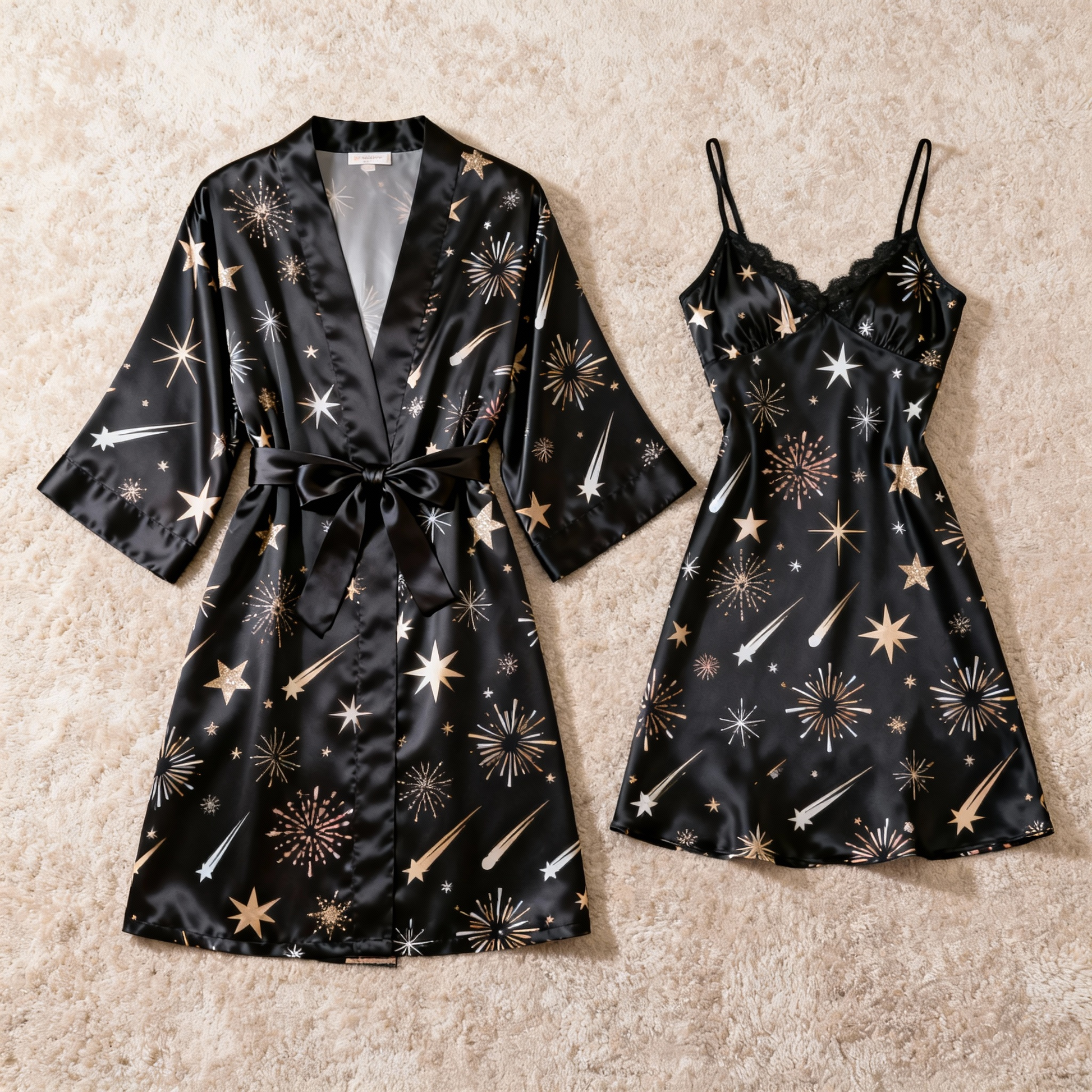 Thoughtful Details: The robe includes a matching self-tie belt for a customizable wrap, and both pieces are finished with fine stitching for durability and a polished look.