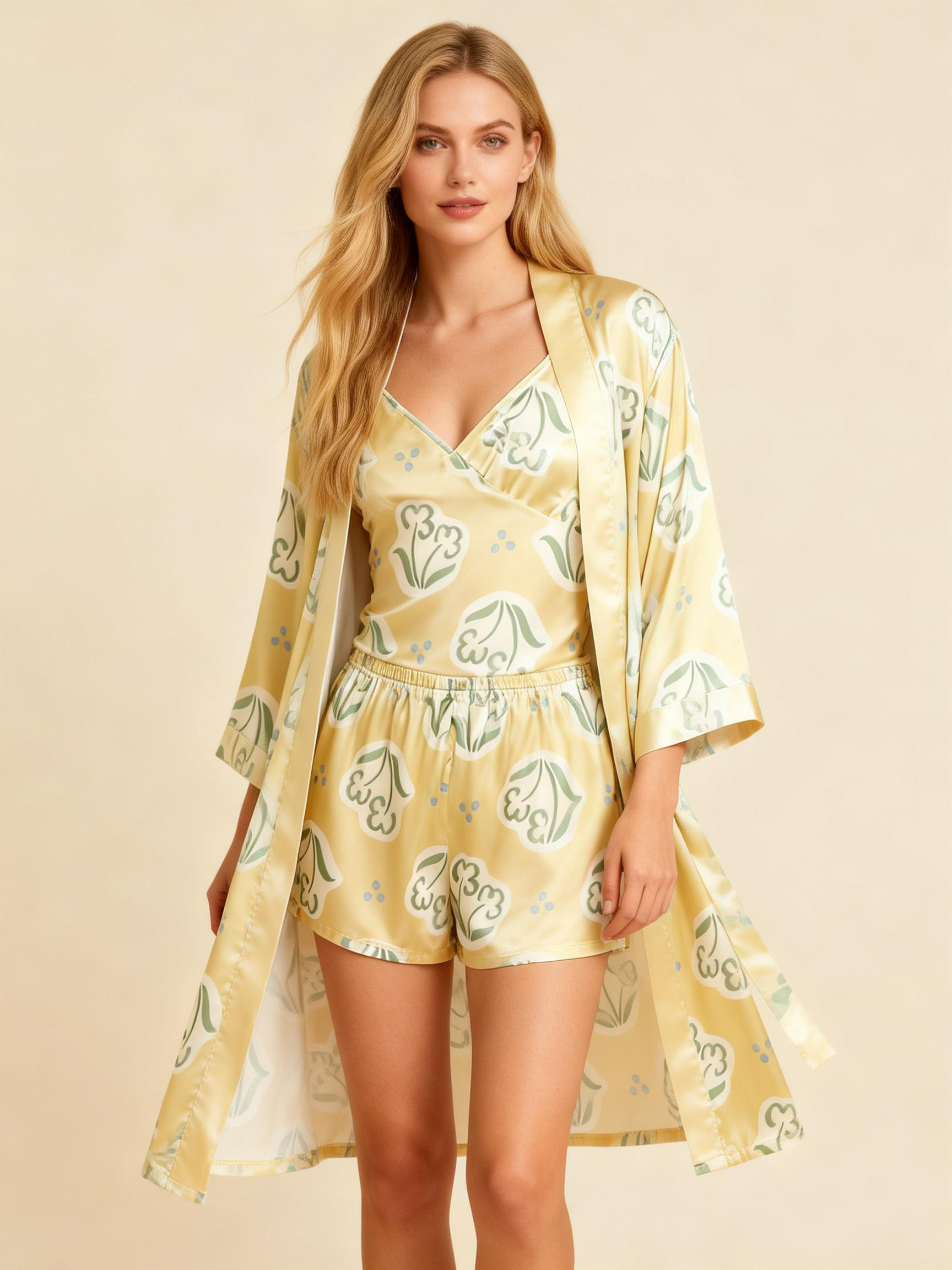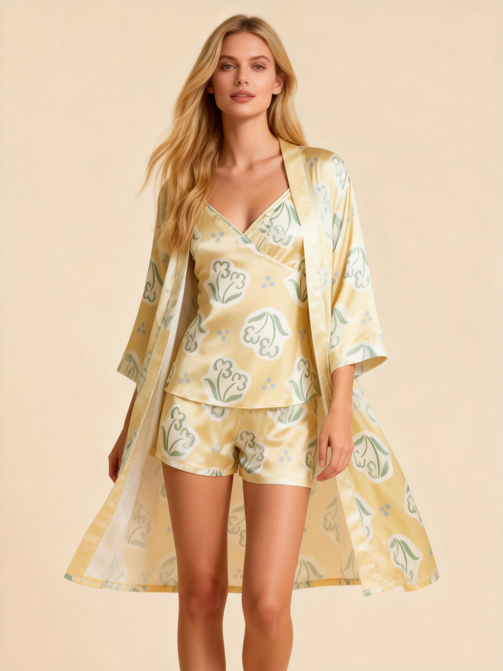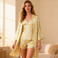 Printed Satin Sleep Set – 3 Pieces Women’s Pajamas
