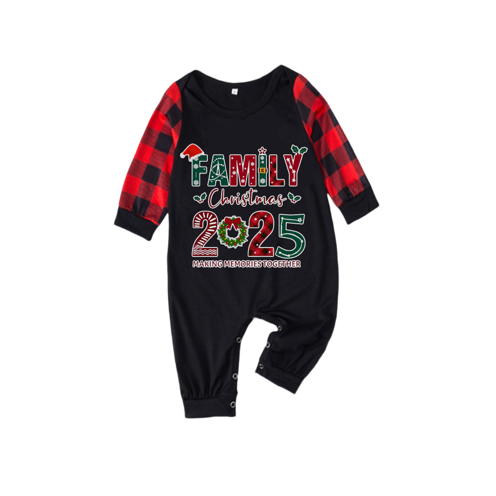 Red and Black Plaid Christmas Pajamas Set With Christmas Holiday Text