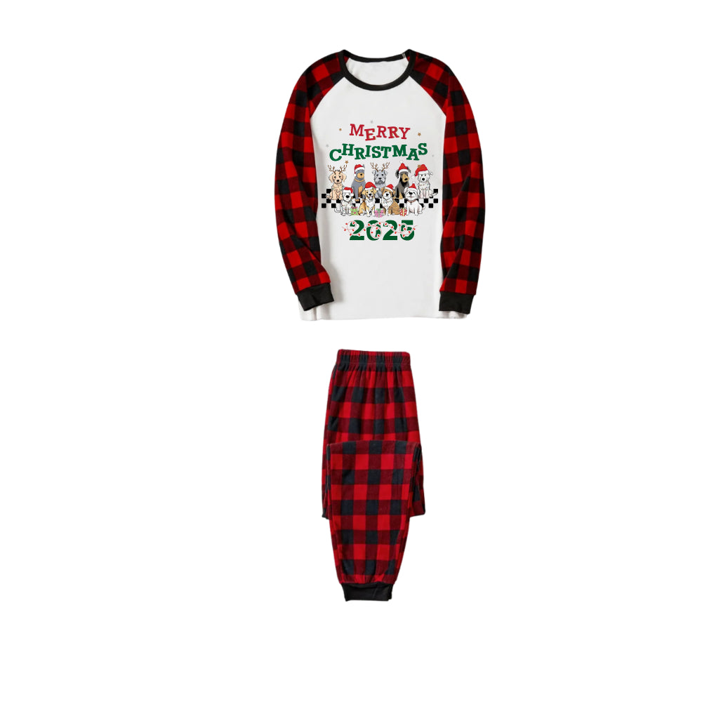 Red and Black Plaid Christmas Pajamas Set With Cute Doggy and Merry Christmas 2025 Cartoon Print