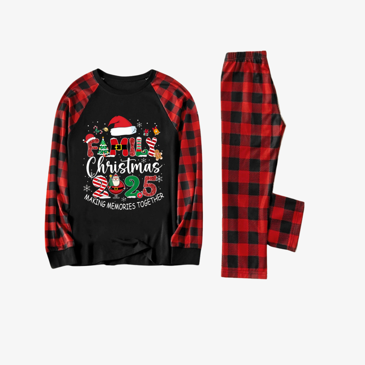Red and Black Plaid Christmas Pajamas Set With "Family Christmas 2025 Making Memories Together" Text Print
