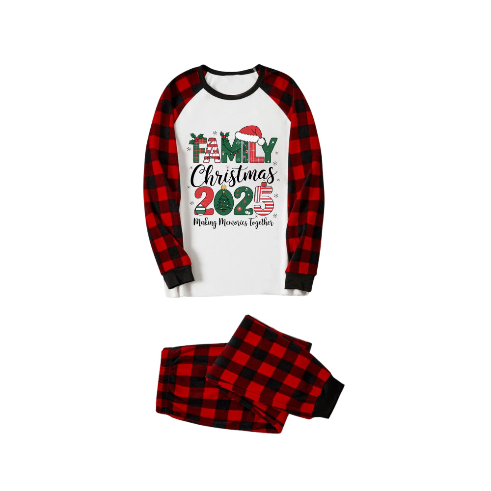 Red and Black Plaid Christmas Pajamas Set With Family Christmas 2025 Text Print