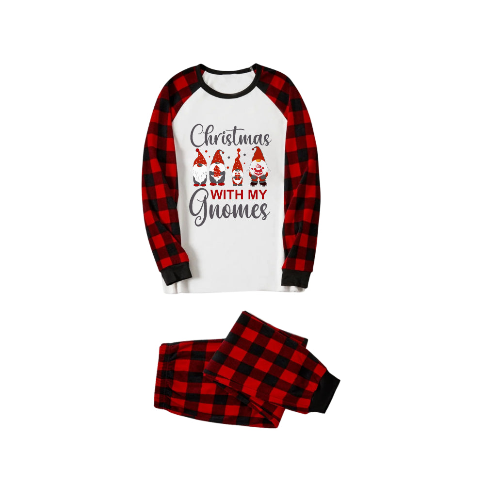 Red and Black Plaid Christmas Pajamas Set With Gnomies Family and "Christmas With My Gnomes" Slogan Print
