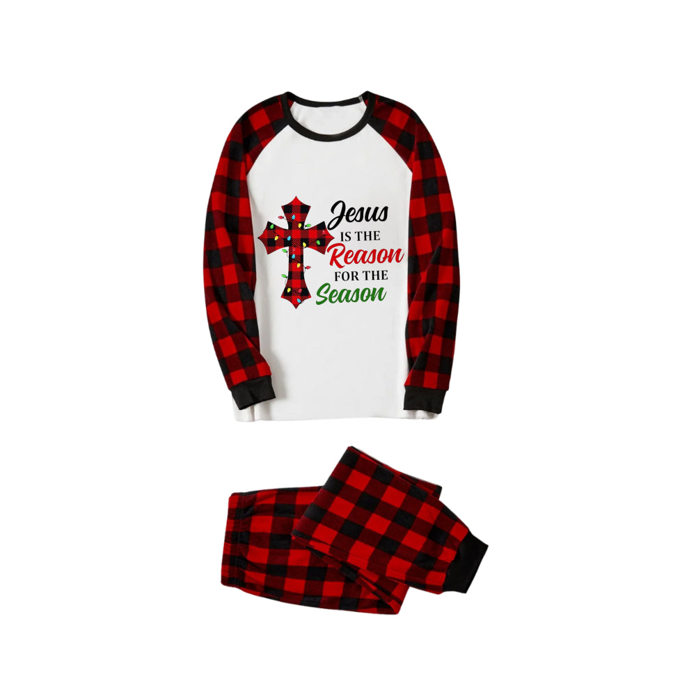 Red and Black Plaid Christmas Pajamas Set With "Jesus Is The Reason For The Season" Slogan Print