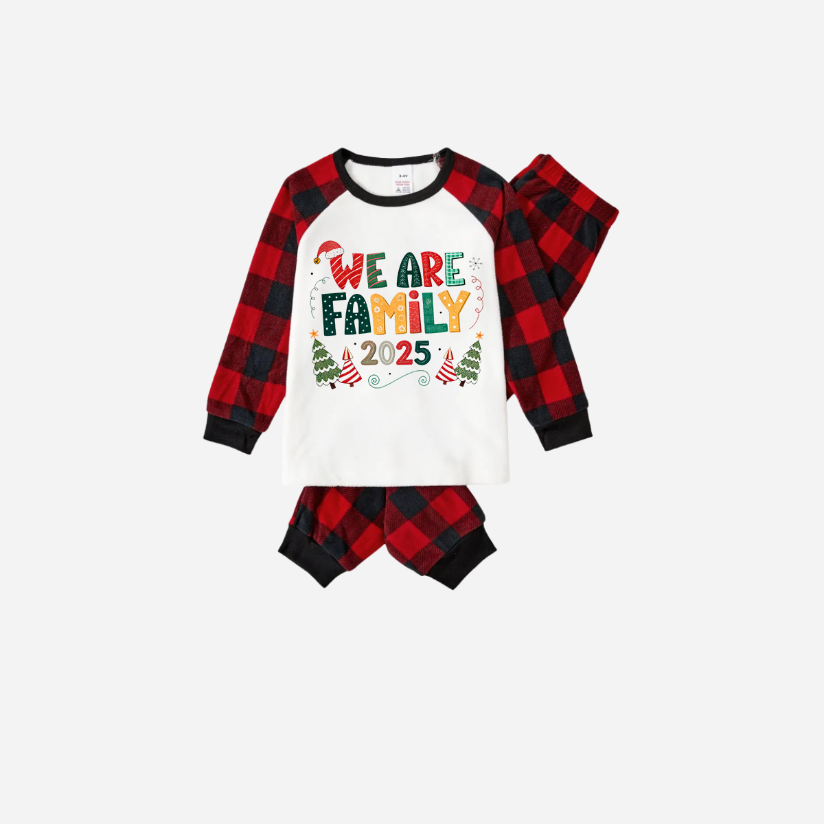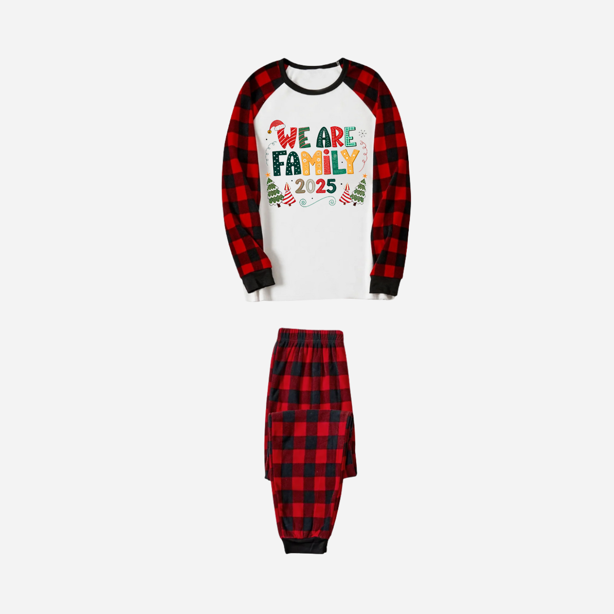 Red and Black Plaid Christmas Pajamas Set With "We are Family" Colorful Text Print