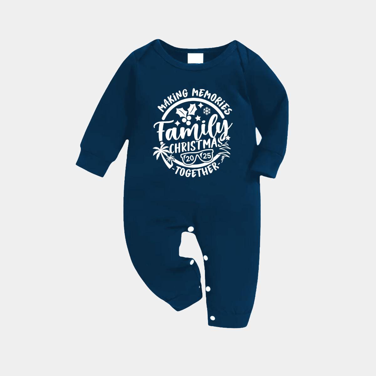 Christmas Make Memories Together 2025 Print Blue Long Sleeve Top With Blue Plaid Family Matching Pajamas