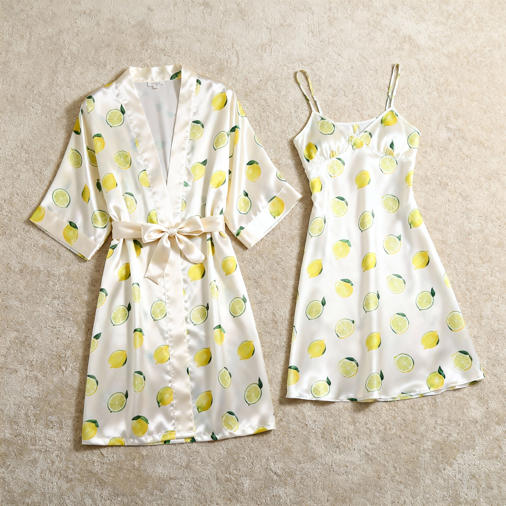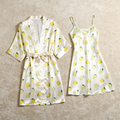 Satin Robe & Nightgown Set - Lemon Pattern Printed