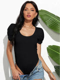 Short Sleeve Tees O Neck Puff Sleeve White Bodysuit