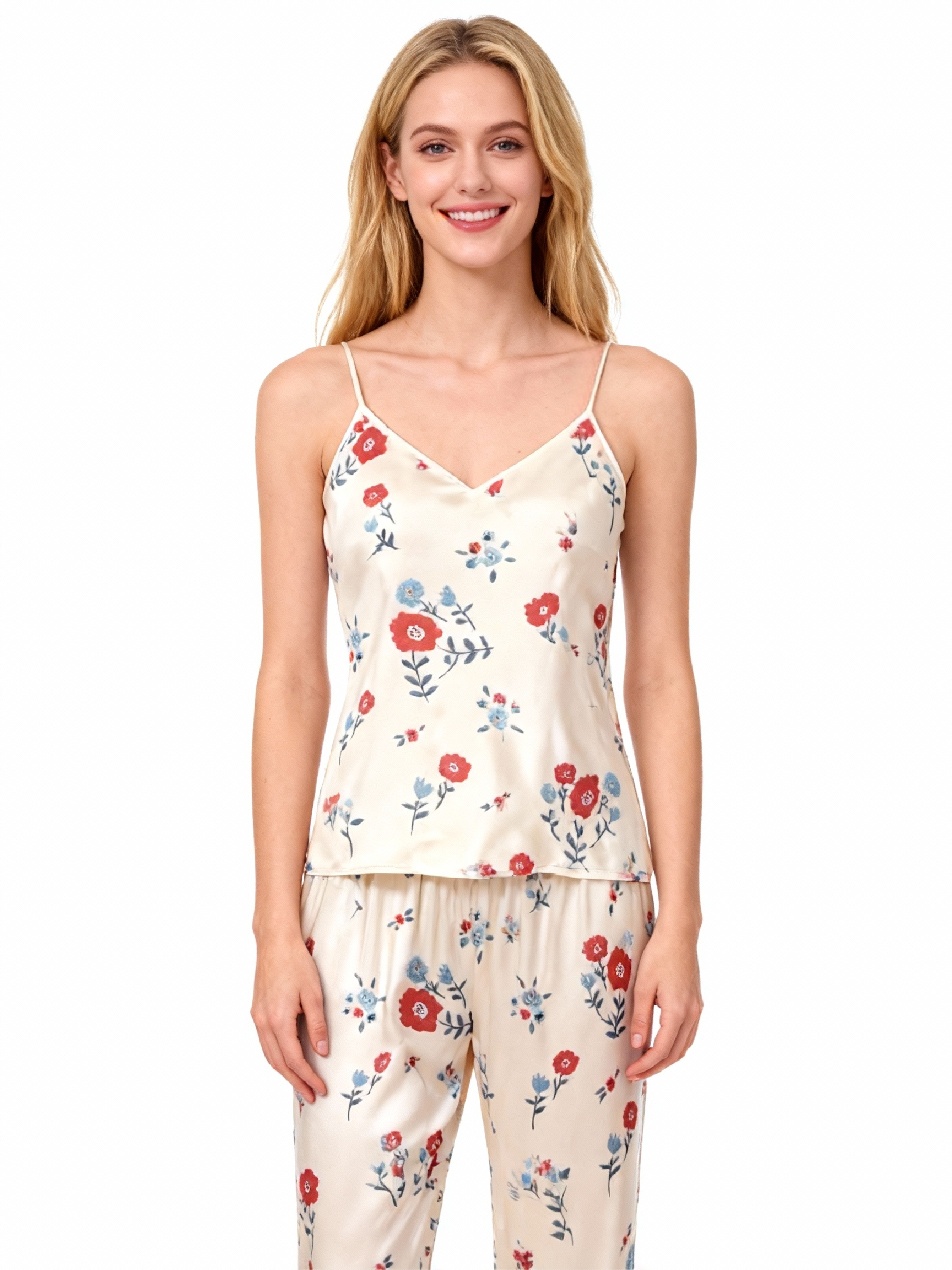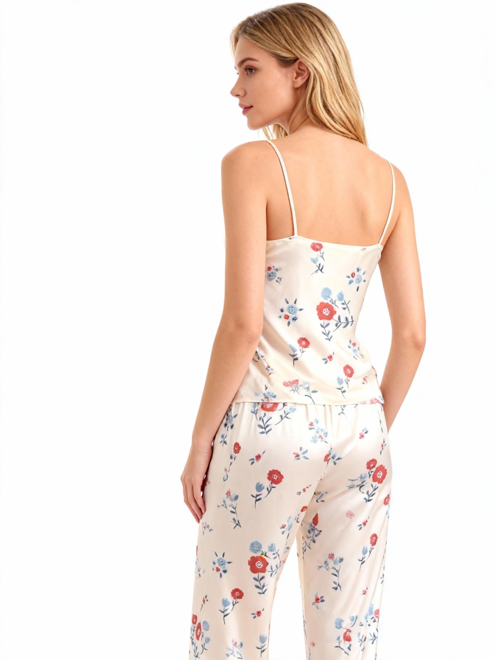 Full-Length Pants: Smooth satin fabric, ankle length, gentle on skin.