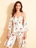 Silky Satin 3-Piece Nightwear Set in Charming Florals Design