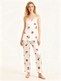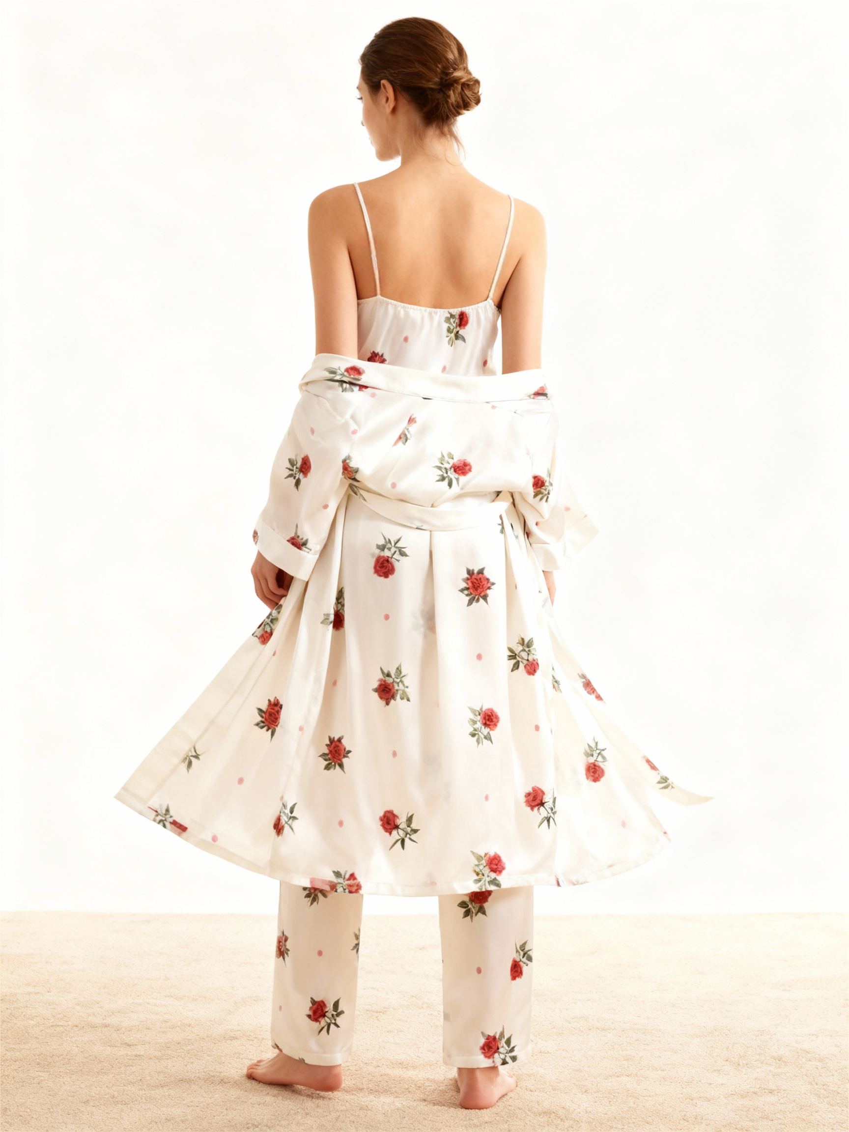 Silky Satin 3-Piece Nightwear Set with Romantic Rose Design