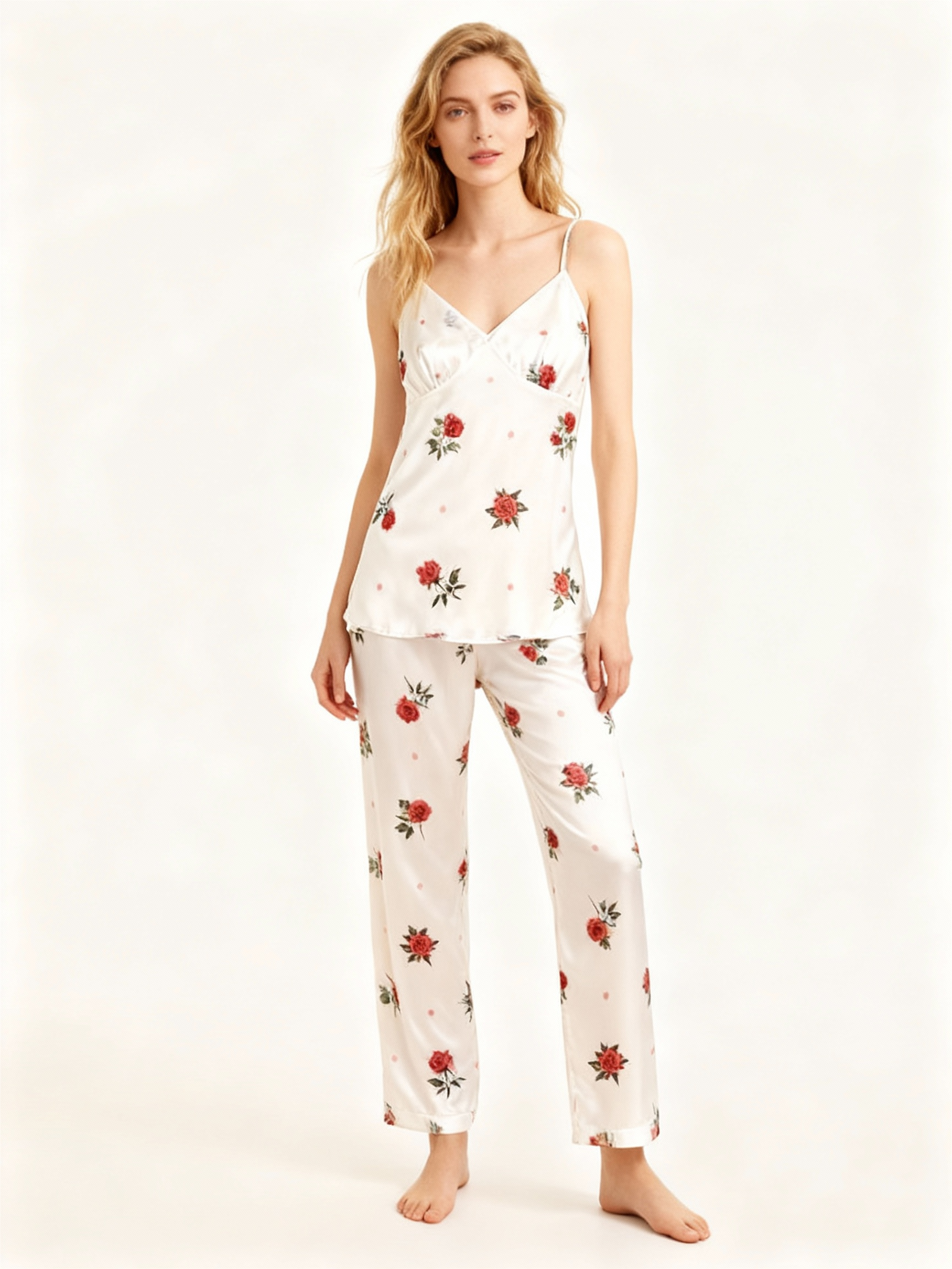 Full-Length Pants: Smooth satin fabric, ankle length, gentle on skin.