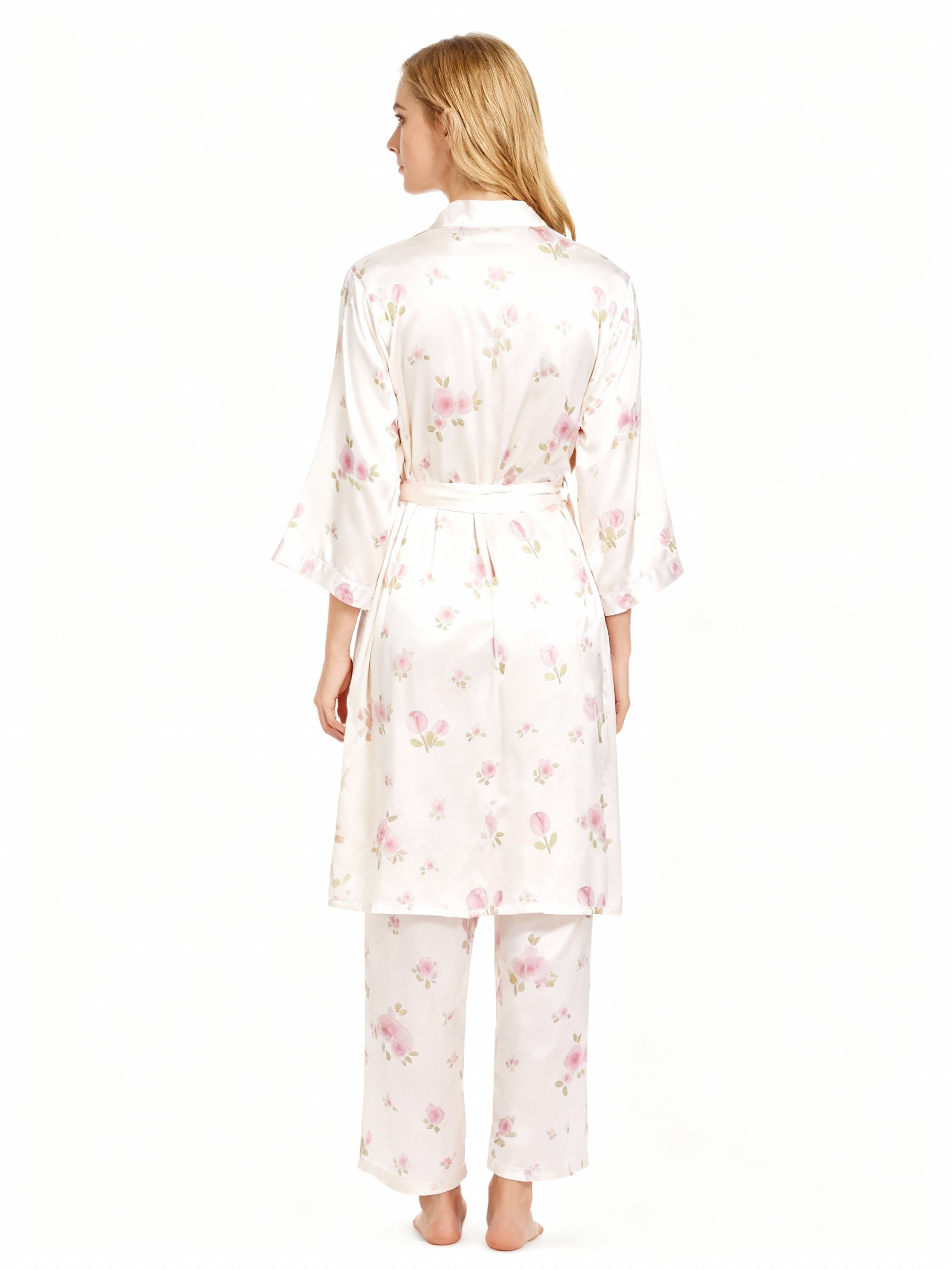 Silky Satin 3-Piece Nightwear Set with Watercolor Florals Design
