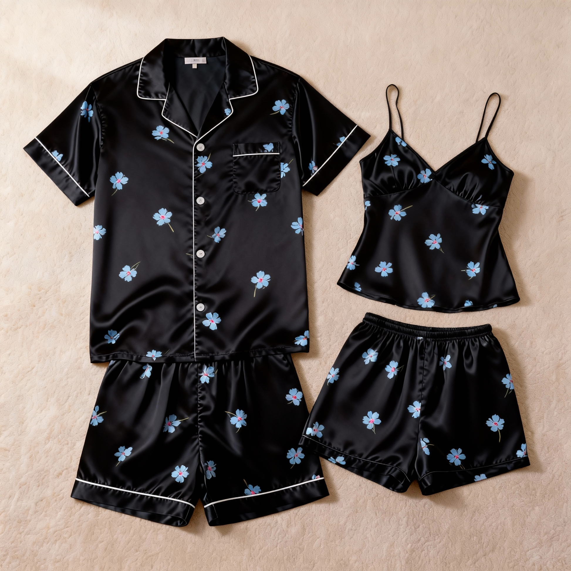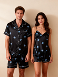 Elevate your sleepwear with our Couple Classic Satin Pajamas Short Set. Designed for comfort and style, this matching set includes: