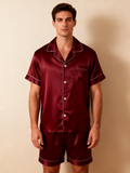 Elevate your sleepwear with our Couple Classic Satin Pajamas Short Set. Designed for comfort and style, this matching set includes:
