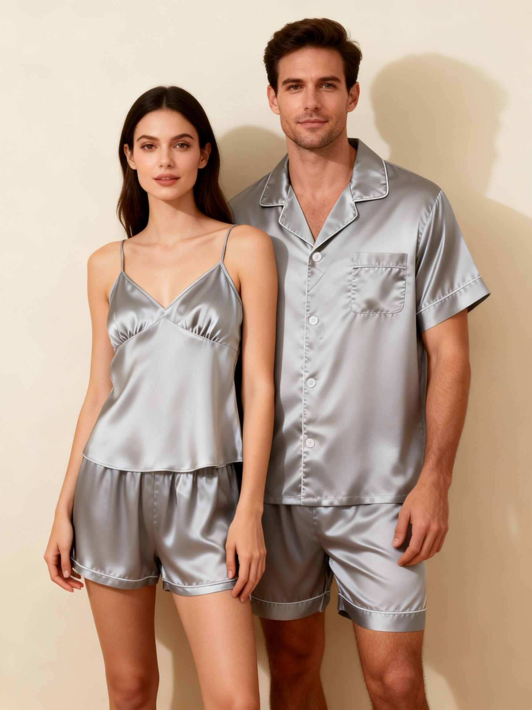Luxury at Home: Couple Satin Pajamas Short Set