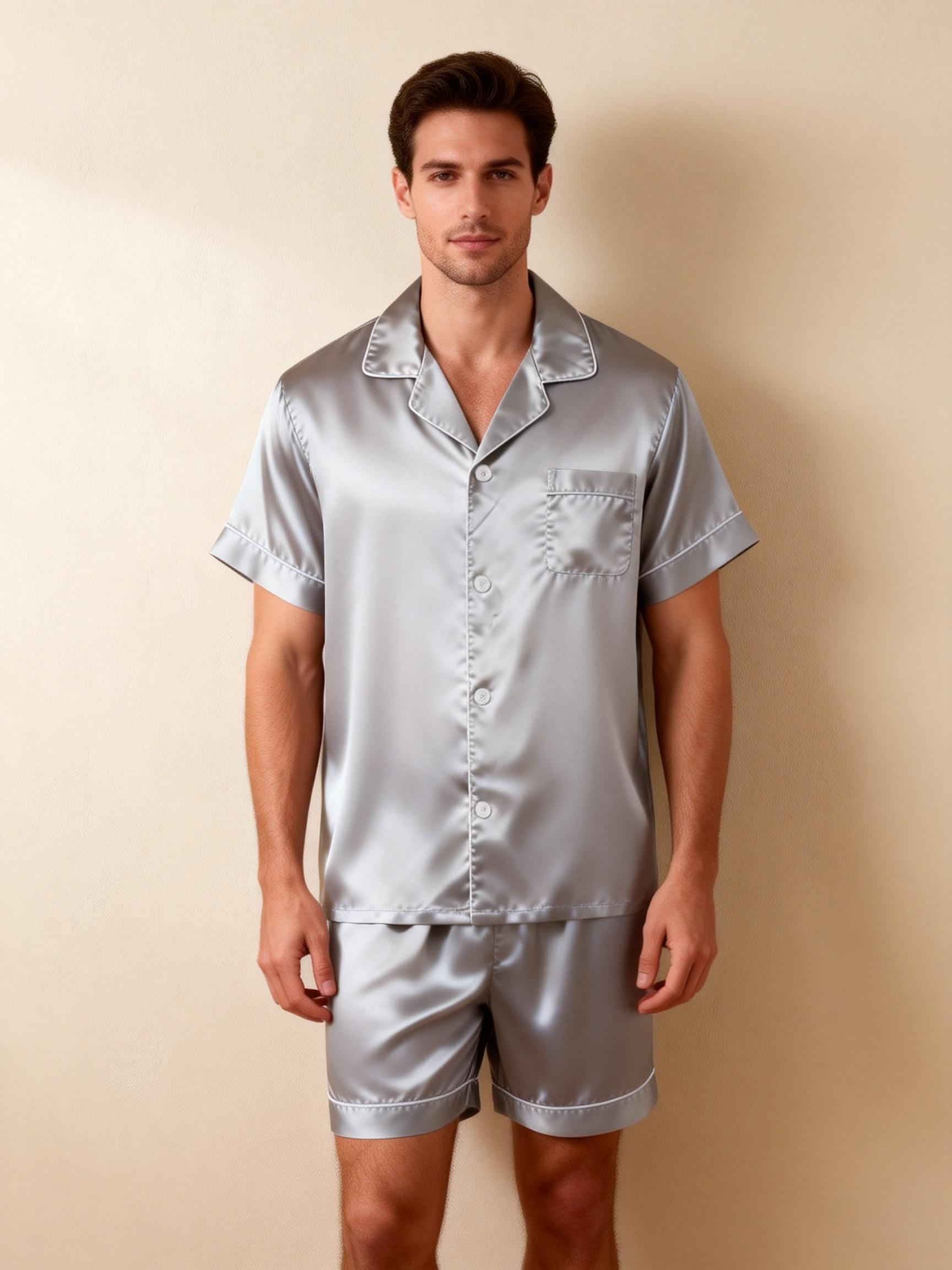 Elevate your sleepwear with our Couple Classic Satin Pajamas Short Set. Designed for comfort and style, this matching set includes: