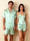 Elevate your sleepwear with our Couple Classic Satin Pajamas Short Set. Designed for comfort and style, this matching set includes: