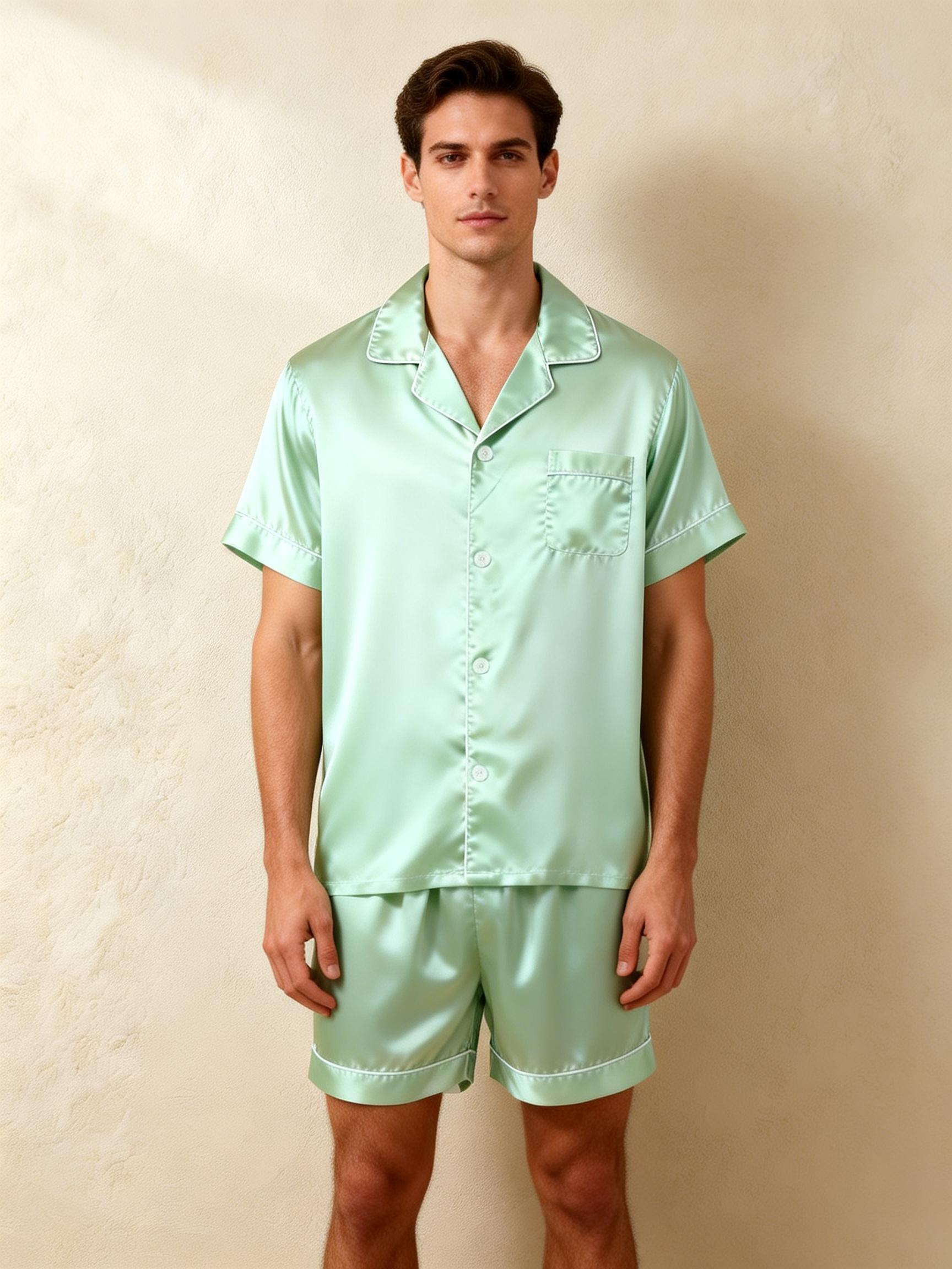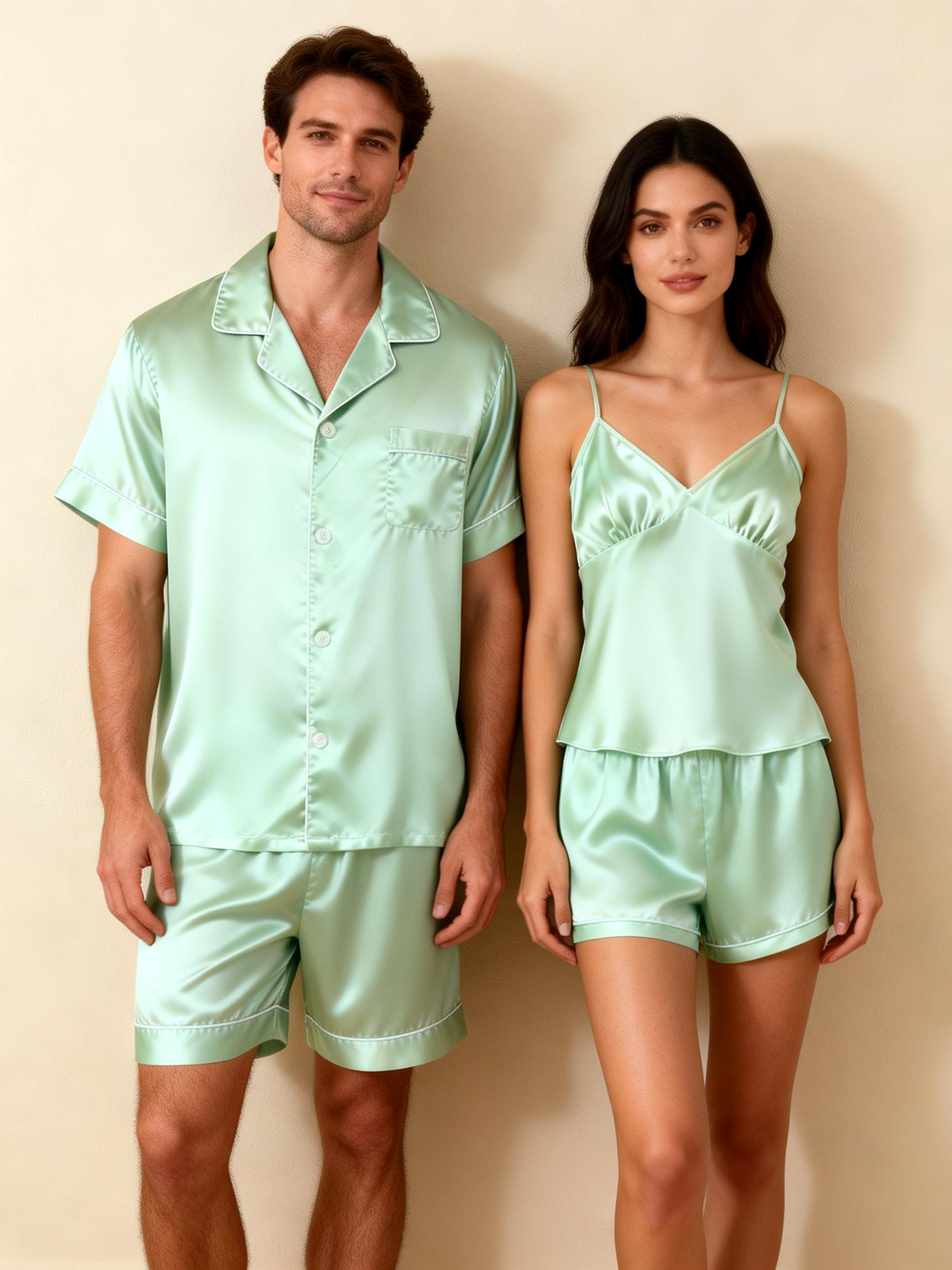 Silky Satin Solid Sleep Set for Couples-Light Green
