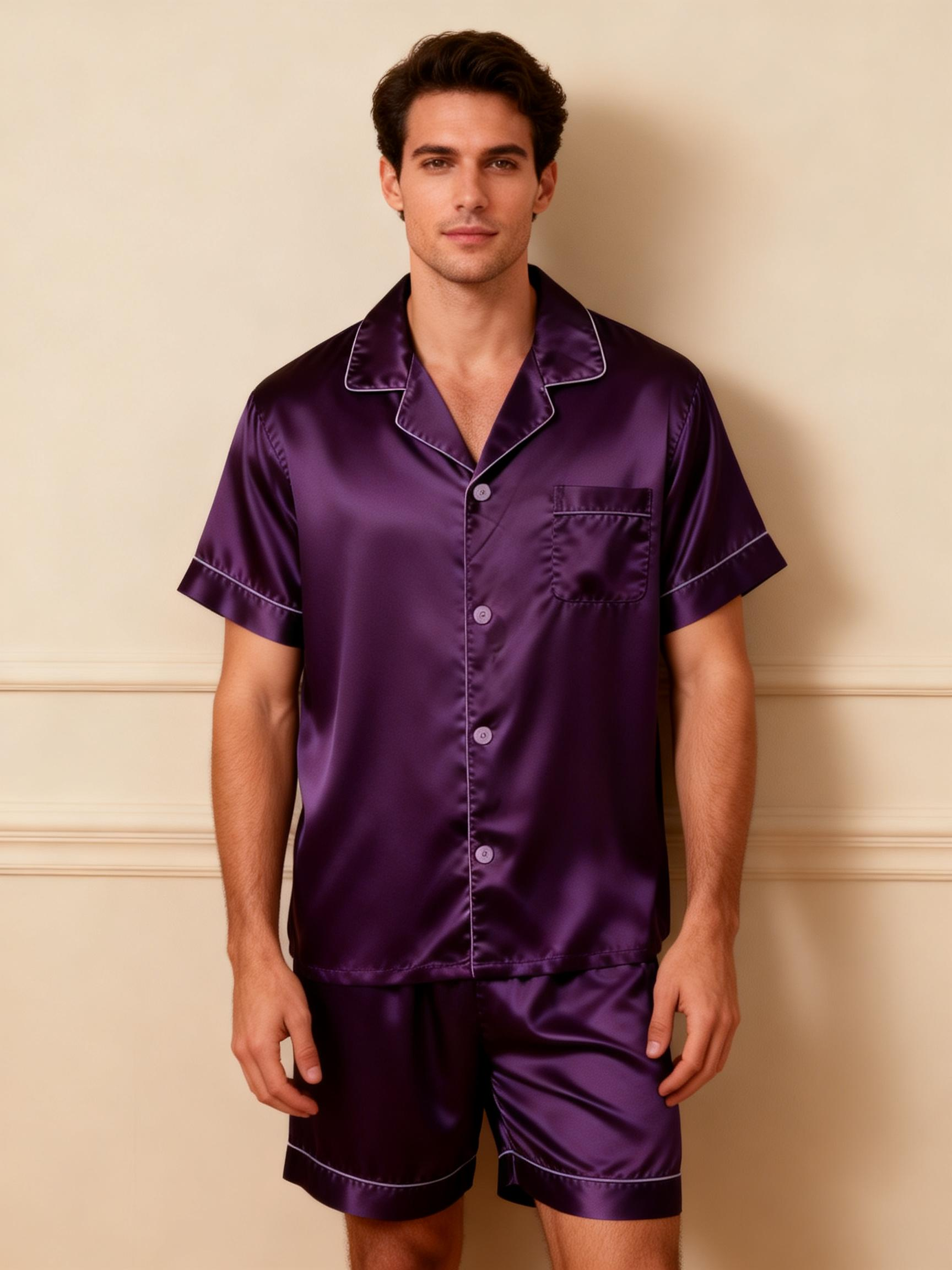 Elevate your sleepwear with our Couple Classic Satin Pajamas Short Set. Designed for comfort and style, this matching set includes: