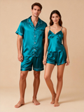 Elevate your sleepwear with our Couple Classic Satin Pajamas Short Set. Designed for comfort and style, this matching set includes: