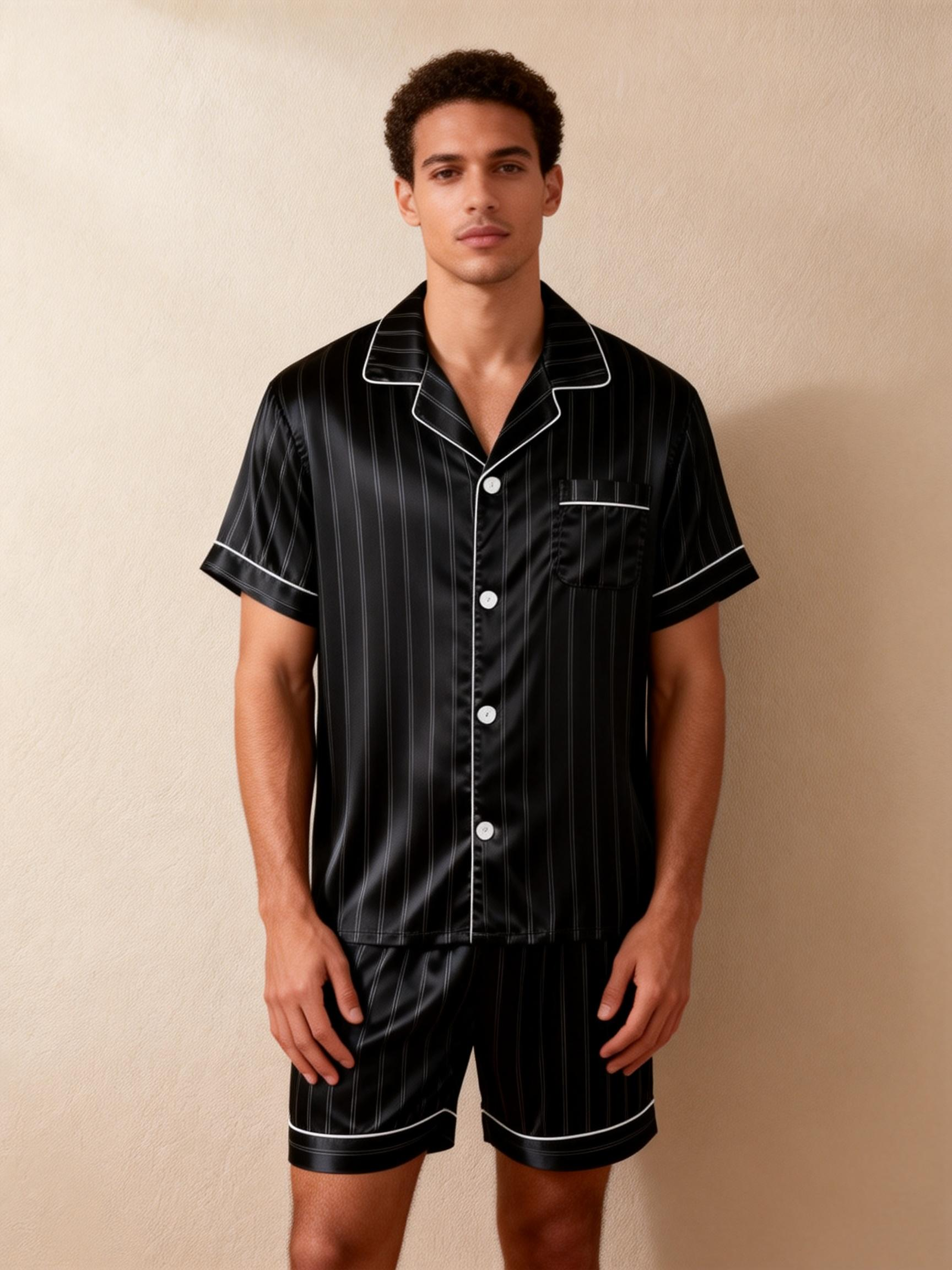 Elevate your sleepwear with our Couple Classic Satin Pajamas Short Set. Designed for comfort and style, this matching set includes: