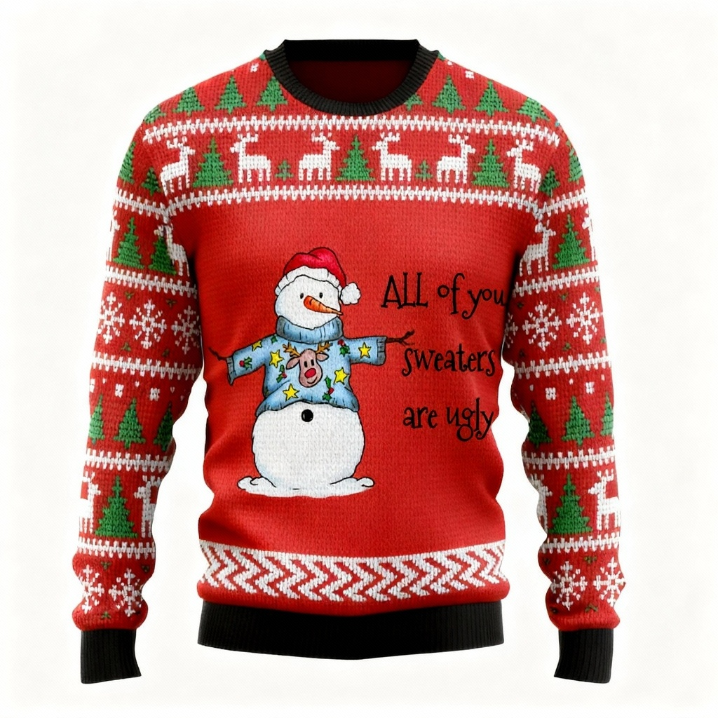 🎄 Iconic Ugliness: Bursting with gloriously tacky designs – think wonky Santas, derpy reindeer, tangled lights, and more!