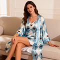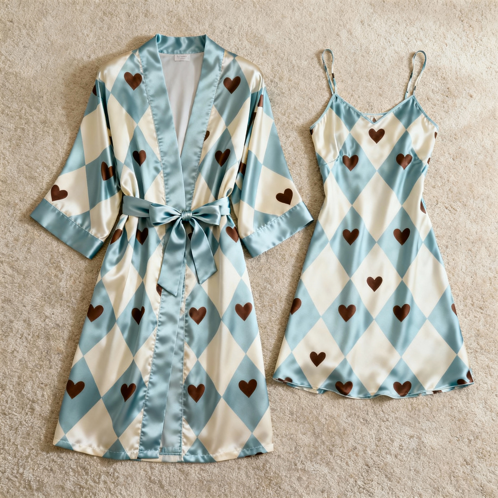 Soft Satin Robe & Nightgown Set - Heart Pattern Sleepwear