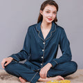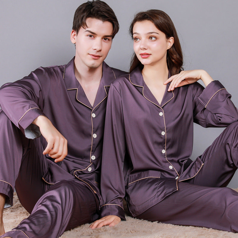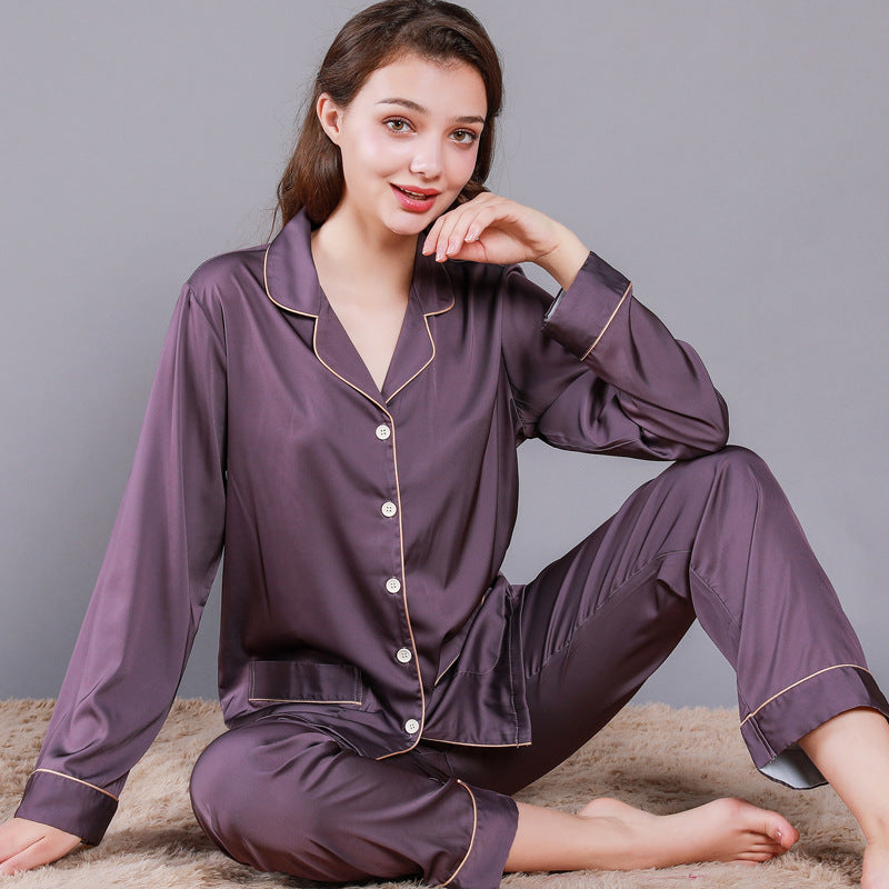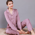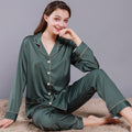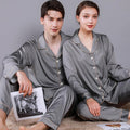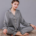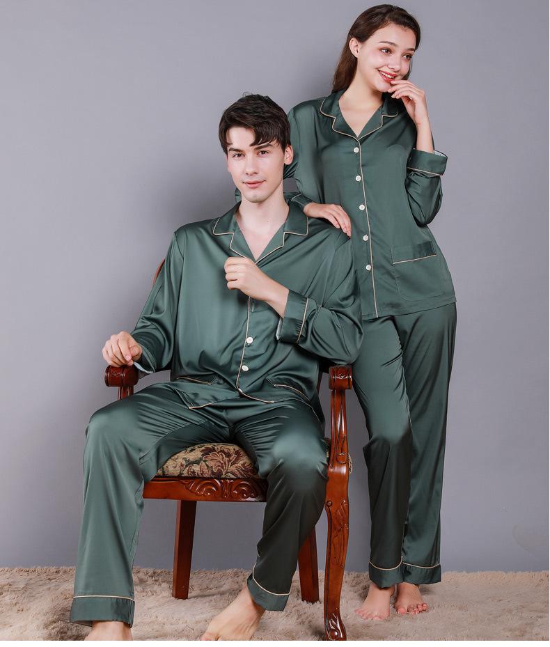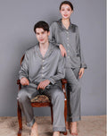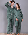 Style: two-piece satin pajamas set.