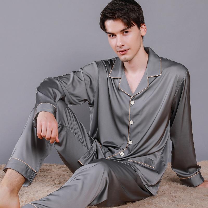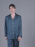 Solid Binding Trim Classic Mens Satin Pajamas Set