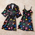 Star-shaped Printed Satin Robe & Slip Nightgown Set