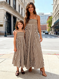 Matching Mother-Daughter Striped Pleated Cami Long Dress