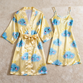 Summer Satin Robe & Nightgown Set - Cartoon Cloud Pattern Printed