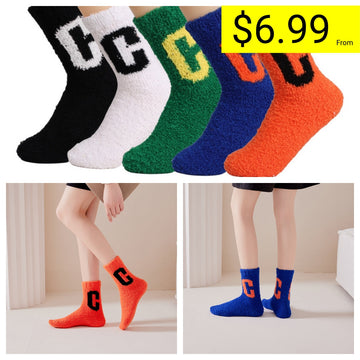 Super Cozy Women's Coral Fleece Socks With Sherpa Lining And Letter Embroidery Holiday Socks