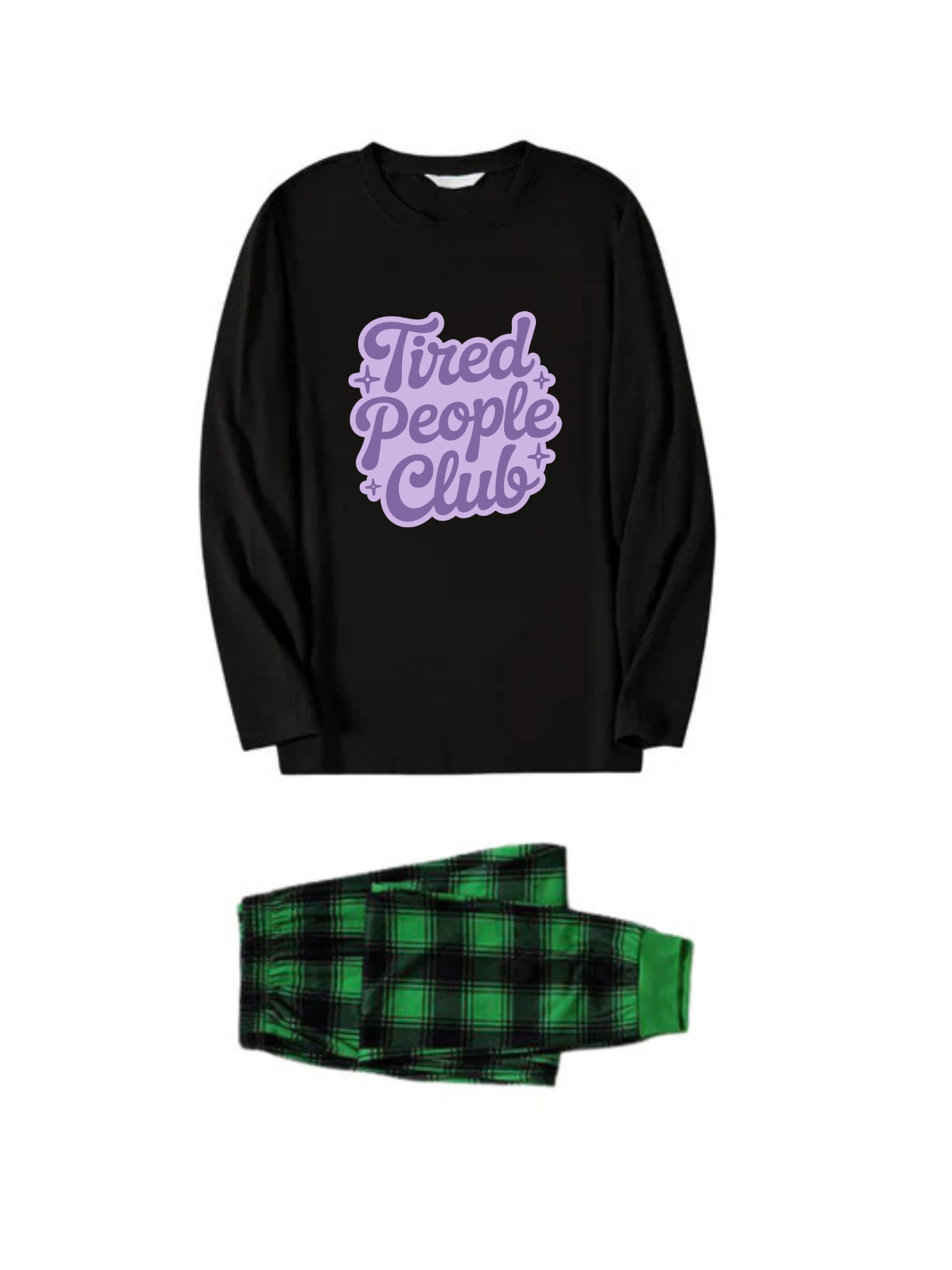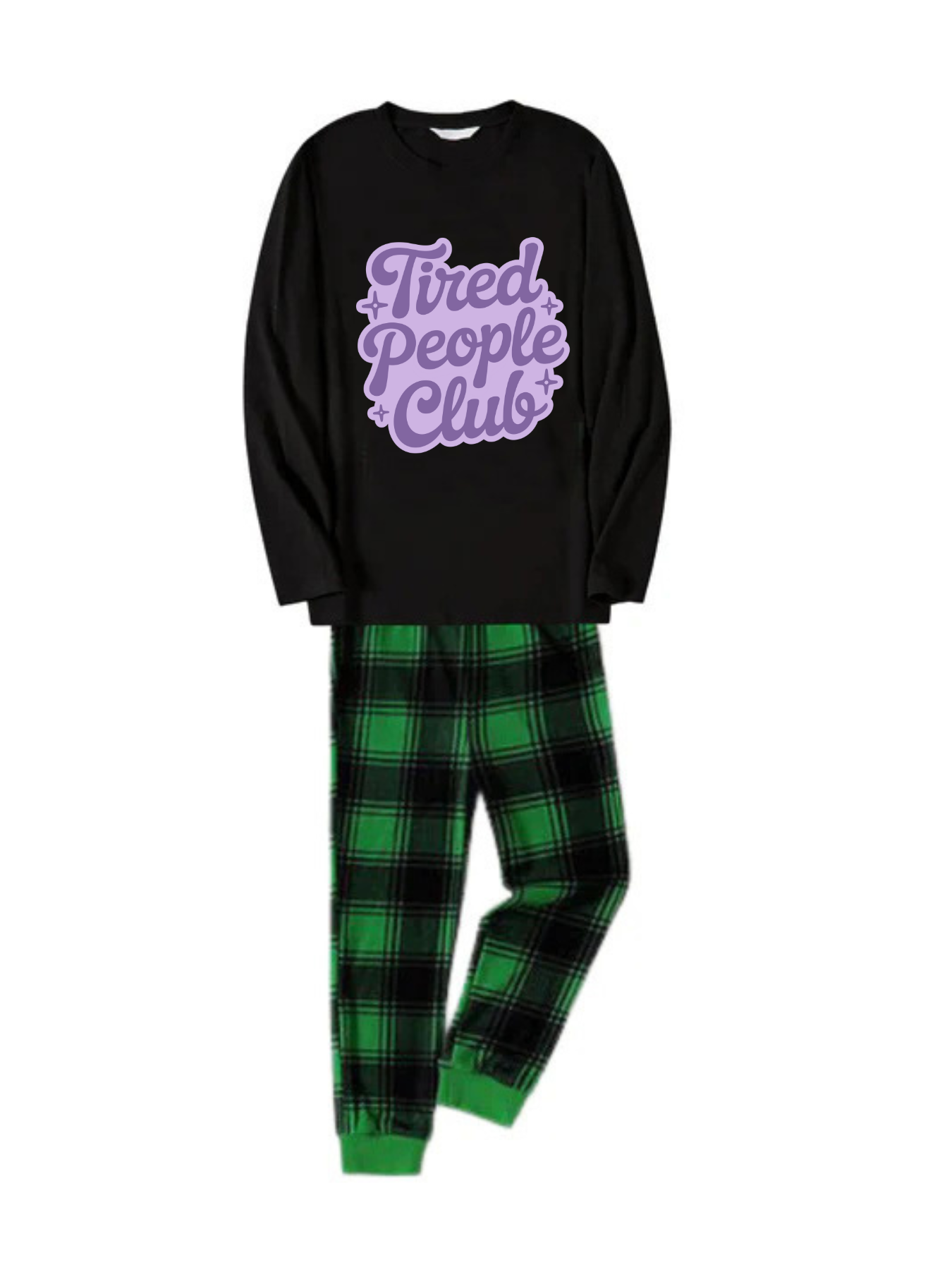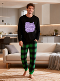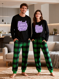 Tired People Club Letter Printed Green Black Plaid Matching Pajamas