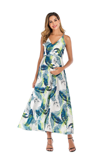 Tropical Plant Print Beach Sling Maternity Maxi Dress