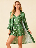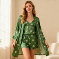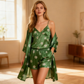Women’s 3-Piece Satin Pajama Set – Stylish Printed Nightwear