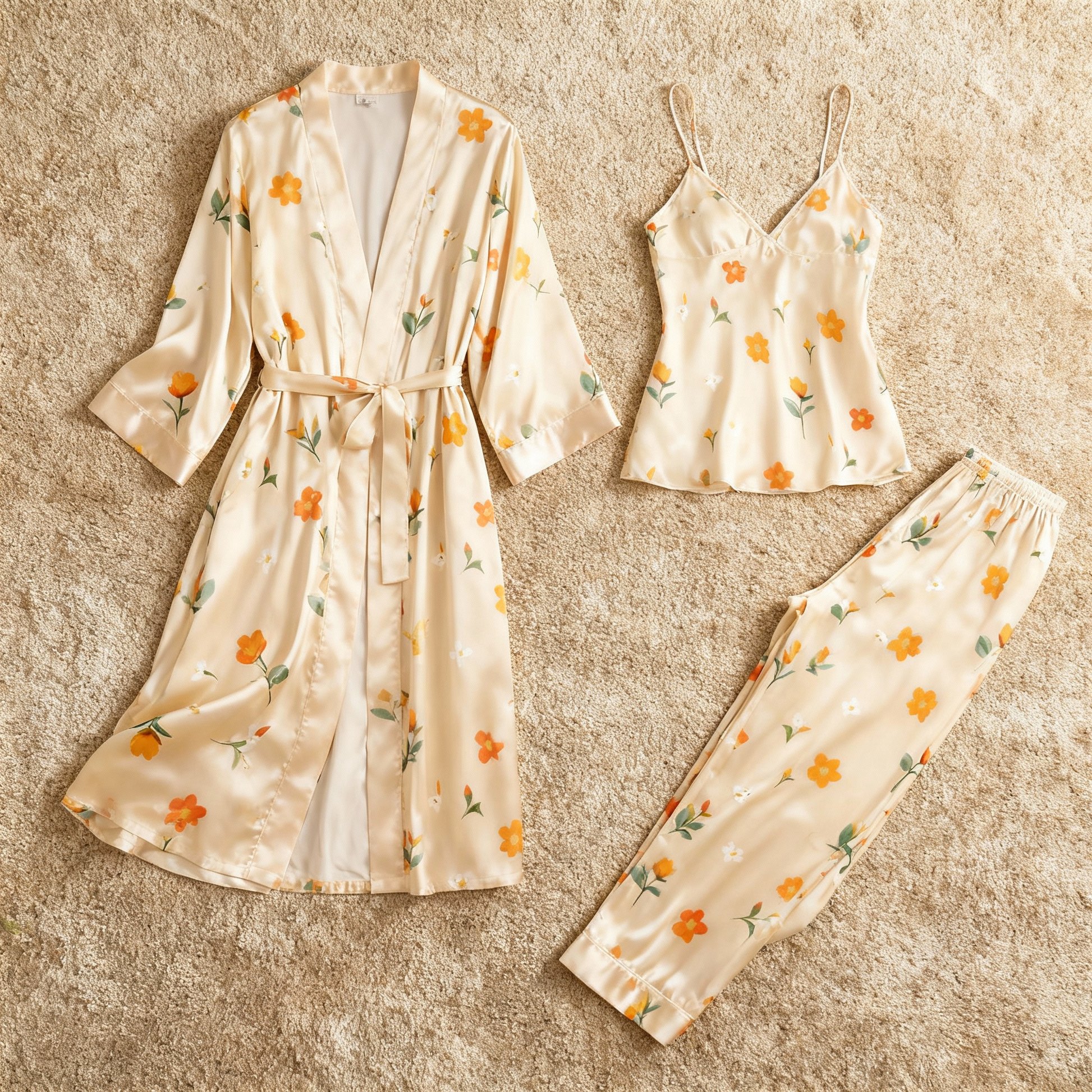 Luxurious 3-Piece Satin Sleepwear Set for Women