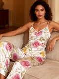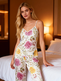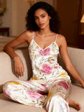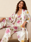 Women's 3-Piece Vintage Floral Satin Lounge Outfit