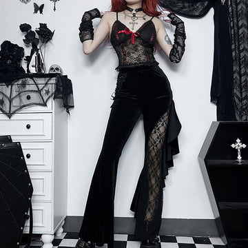 Women's Gothic Hollow Out Ruffle Trim Patchwork Flared Pants